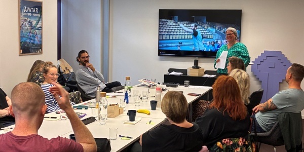 Måns Billing och Carolina Falk håller i en workshop i Shared Gaming & Film Stories. Foto: Lisa Nyed, Film i Skåne. Licens: Creative Commons Erkännande 4.0 Internationell (CC BY 4.0)
