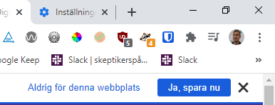 Du behöver kanske inte uppdatera alla dina lösenord till säkrare direkt, det första steget är att lägga in dem i valvet. Ta för vana att svara Ja på frågan om inloggningsuppgifterna ska sparas. Glöm inte bort att försöka uppdatera dina äldre, kanske mer osäkra lösenord, till nya svårknäckbara efterhand!