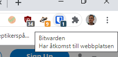 Nästa gång du besöker sidan kommer en liten siffra i Bitwardens ikon indikera att den innehåller inloggningsuppgifter för tjänsten. Klicka på den och välj rätt tjänst.