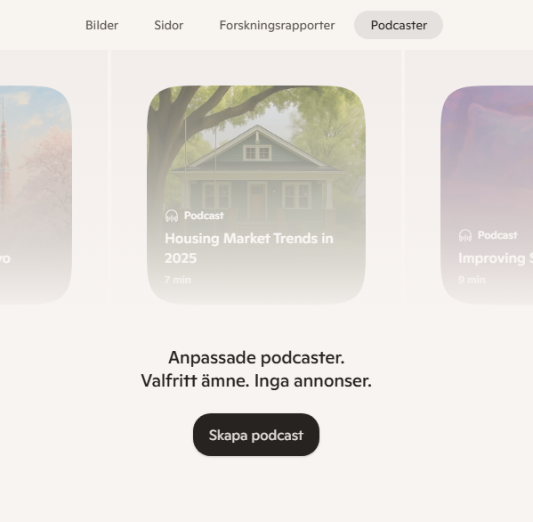 Här hittar du också bibliotek, vilket är en liten intressant funktion i Copilot. Den funkar som en genväg till ett format där du kan skapa bilder, sidor, forskningsrapporter och podcaster. Vi återkommer till de här också, lite längre ner.