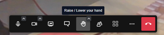 Om man är många i ett möte kan det vara bra att använda sig av räcka-upp-handen-funktionen. Om man trycker på knappen nere i vänstra hörnet dyker det upp en ikon med uppsträckt hand i rutan och mötesledaren kan fördela ordet lite lättare.