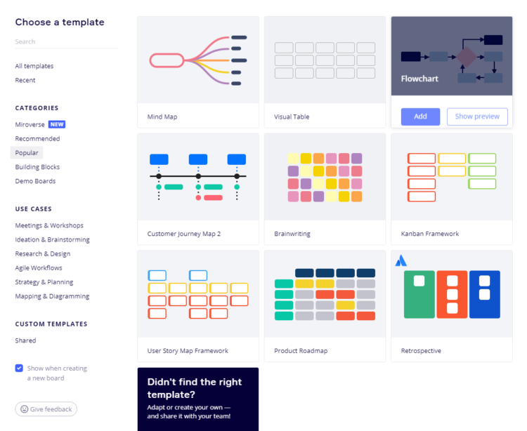 När du skapat ett nytt team kan du börja förse denna med olika (white)boards. En stor mängd färdiga mallar kan hjälpa dig att snabbt komma igång med den sorts whiteboard du behöver.