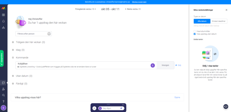 Varje uppgift som läggs till kan få sin egen ansvarig och sin egen deadline och det finns flera olika sätt att visualisera för medarbetarna vem som gör vad och hur stora framsteg som görs.