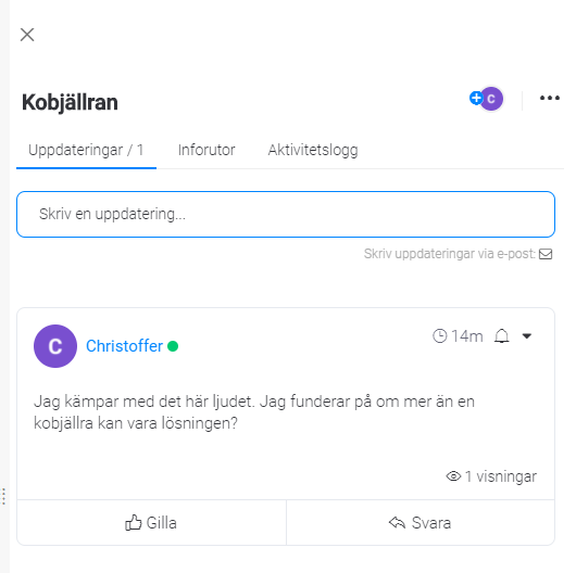 Självklart har uppgifter sina egna diskussionsmöjligheter.