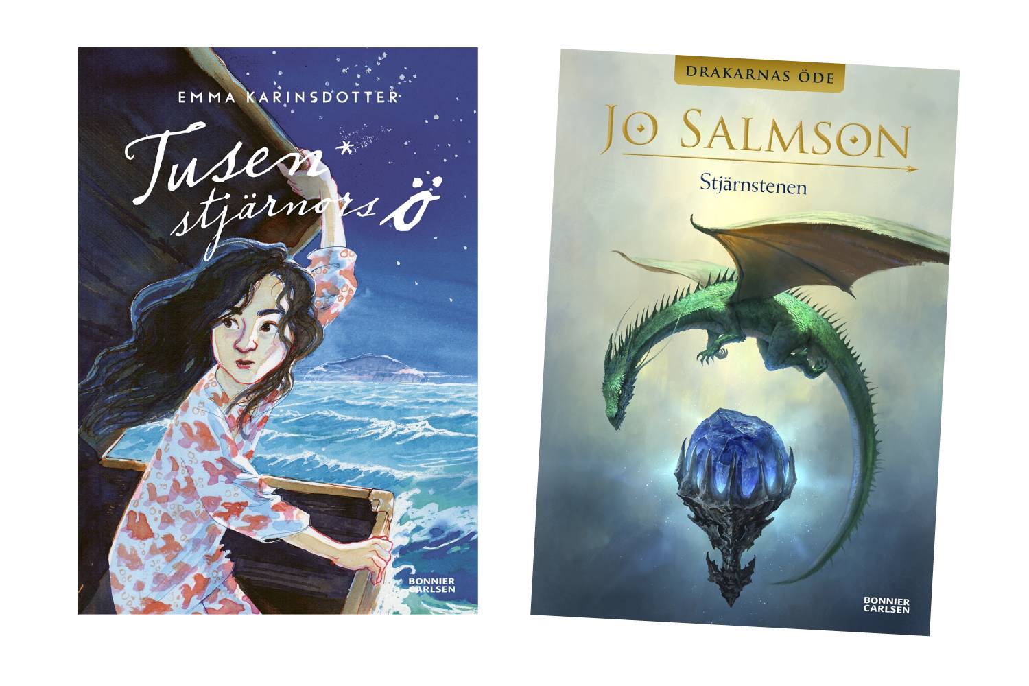 Ett förslag är Stjärnstenen av Jo Salmson. I den får läsaren följa med den unga flickan Nea på ett äventyr i ett fantasiland fyllt med magi och drakar. Boken har ett ganska högt tempo och mycket spänning. Det finns även ett gemensamt drag vad gäller böckernas stämning, då Nea liksom Tigris, bearbetar sorgen efter en förälder som förolyckats. Den sorgliga tonen är dock inte lika framträdande som i “Tusen stjärnors ö”. “Stjärnstenen” saknar också den vardagliga hemmamiljö som utgör en del av berättelsen i “Tusen stjärnors ö”.