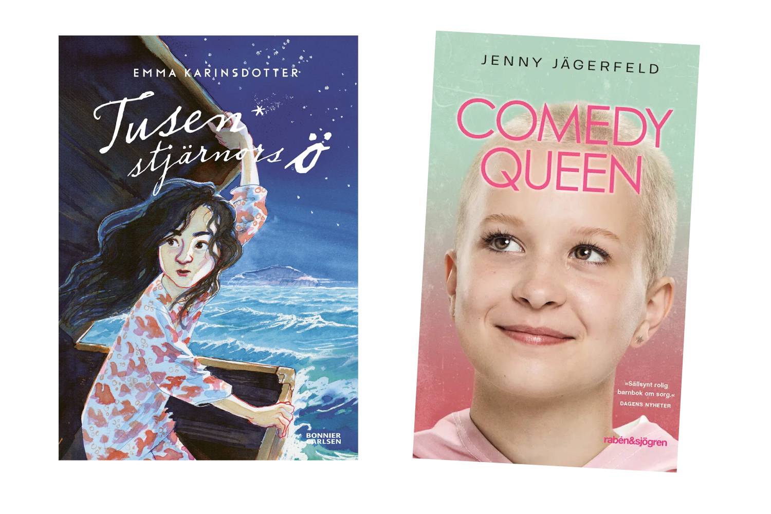 Ett annat förslag är boken Comedy Queen av Jenny Jägerfeld där också sorg är ett underliggande tema i berättelsen. Den har en stark huvudkaraktär i Sasha och utspelar sig i en vardaglig miljö. Här finns dock ingen magi eller något fantasiland och den humoristiska tonen i boken skiljer sig avsevärt från “Tusen stjärnors ö”. Flera av de nycklar som barnet framhöll var viktiga i läsupplevelsen saknas därmed i detta förslag, men kanske kan hon tycka den är intressant ändå.