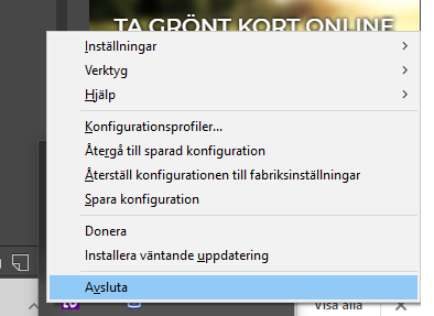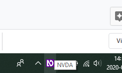 Klicka på NVDA-loggan nere i aktivitetsfältet längst ner till höger och välj “Avsluta”. Tryck OK.