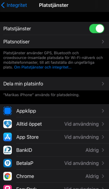 Du kan också stänga av din platsinformation helt när du inte använder telefonen aktivt. Det spar dessutom på batteriet.