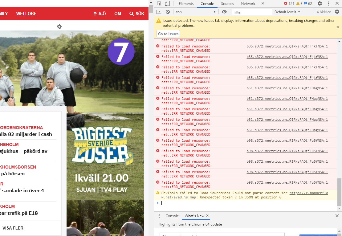 Gå till sidan du vill skapa en fejkvariant av. Högerklicka någonstans på sidan och välj “Inspektera”: I förra lektionen var vi inne i det som kallas “Elements”. Nu ska du välja alternativet bredvid, det vill säga “Console”.