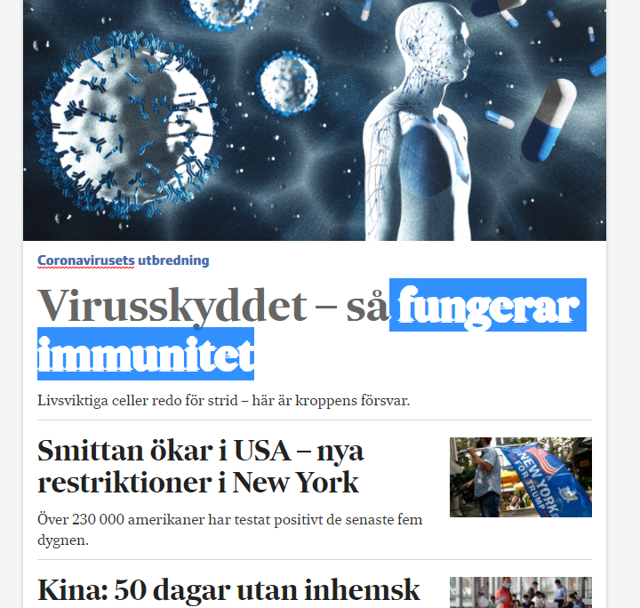 Sedan sätter du helt enkelt markören någonstans på sidan, markerar var du vill skriva och skriver som vanligt på tangentbordet. Nedan har texten ”fungerar immunitet” markerats.