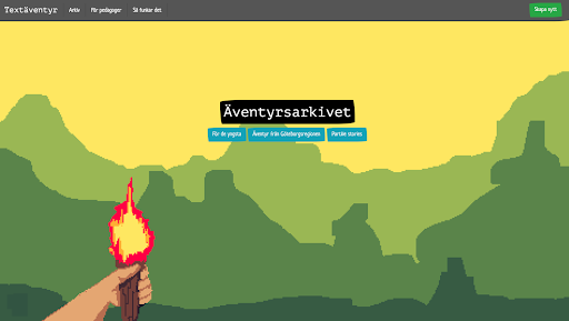 På startsidan av Textäventyr finns det två knappar som leder till samma plats, Äventyrsarkivet, vilka är ”Se vad andra gjort” och ”Arkiv”. Klickar du på någon av dessa kommer du till vårt lilla arkiv som innehåller exempel på hur textäventyr kan användas.